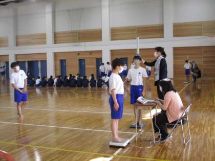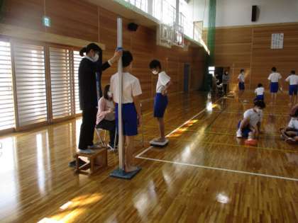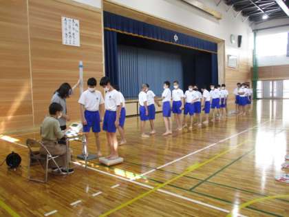 1限、3年生は発育測定を行いました。身長何センチ伸びたでしょう。1、2年生は明日行う予定です。