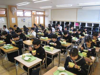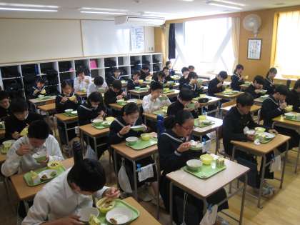 さすが2年生。てきぱきと準備、配膳をしていました。給食の時間は、みんな黙食をしています。残さず食べて、元気に学校生活を送ろう。