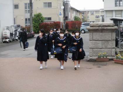 今朝は登校時、小雨が混じり少し肌寒く感じました。今日の下校完了時間は18:00です。