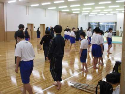 現在1年生は部活動見学や仮入部の期間です。放課後、多くの部に1年生が来ていました。写真は男子バドミントン部、女子バドミントン部、剣道部の様子です。