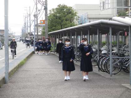 今朝の登校時は晴れていましたが気温は低く感じました。今日の下校完了時間は17:00です。