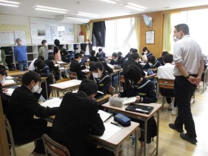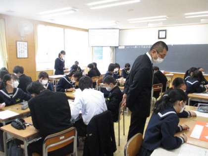 今日は学習参観と学年懇談会を行いました。学習参観は全クラス担任の先生が授業を行いました。1限は2年生の参観時間です。写真は上段から21H学活、22H、学活、23H国語です。