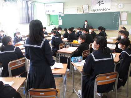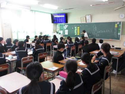 2限は1年生の参観時間です。写真は上段から11H理科、12H道徳、13H英語です。