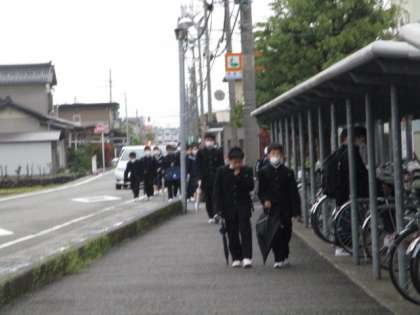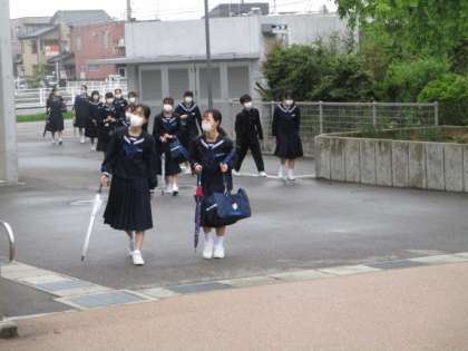昨夜からの雨があがり、登校時は曇りになりました。