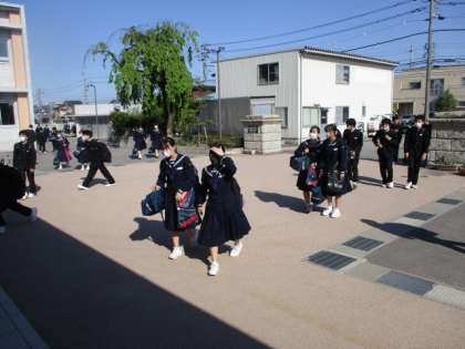 今朝はとてもよい天気に恵まれました。プランターの花も色鮮やかに咲いています。今日の下校完了時間は17:30です。