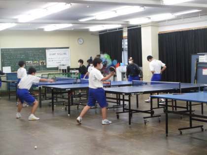 先日、部結成が行われ、1年生も部活動に参加しています。写真は上段から文芸部、卓球部、柔道部の様子です。