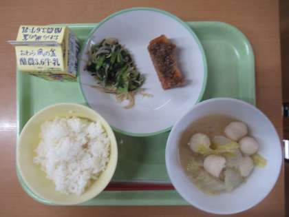ごはん 揚げ出し豆腐のごまだれかけ 昆布和え つみれ汁 牛乳