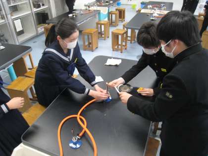 今日は、硫黄と鉄の混合物を燃やす実験を行いました。生徒たちは、燃やした後の混合物の変化を興味深そうに観察していました。実験を通して、理解が深まるとよいですね。