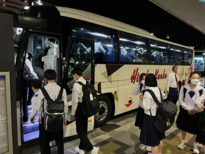 バスでホテルに向かいます。まだまだ、元気です。