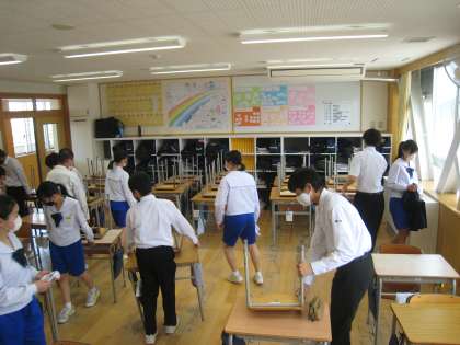 今週から清掃の場所が替わりました。生徒たちは、一生懸命に清掃に取り組んでいました。皆さんが学んでいる大切な速中です。きれいにして学習環境を整えましょう。