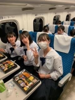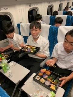 新幹線内で昼食を食べています。