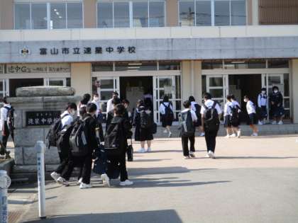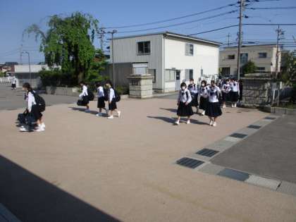 今日は暑くなりそうです。制服は移行期間ですが夏服が目立つようになりました。今日の下校完了時間は15:55です。