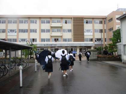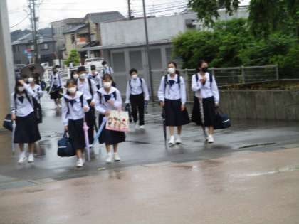 今朝からの雨は、登校時には弱まってきました。本日の下校完了時間は18:00です。