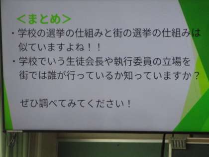 朝の速星タイムで生徒会が企画した「選挙を学ぼう」が始まりました。実社会で行われている選挙と生徒会の選挙などを題材にその役割や重要性を学びます。この企画は来週も続きます。