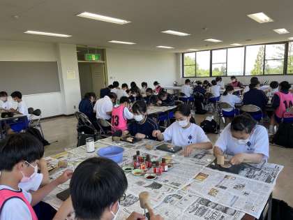 写真下は、イニシアティブゲーム(ステッピングストーン)をしています。