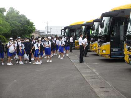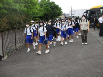 1年生は予定していた時間に少し遅れて、16:30にスポーツプラザ駐車場に到着しました。生徒は外の活動が多かったためか、少し日焼けしているようでした。
