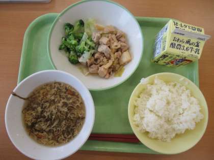 ごはん 牛乳 あっさりチキン そえ野菜 卵ともずくのスープ