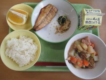 ごはん 牛乳 さばの塩焼き 香味あえ 豚肉の南蛮煮 河内晩柑
