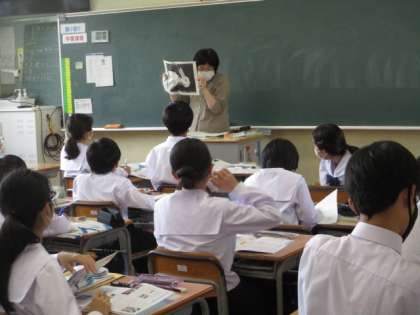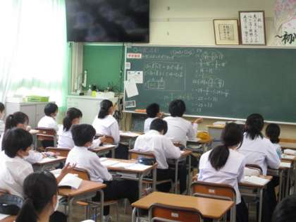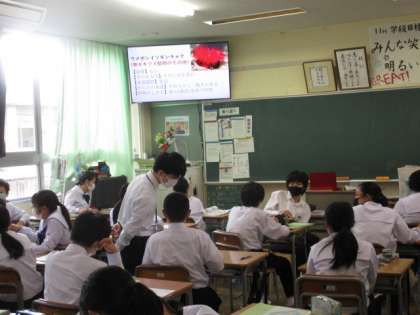 4限の授業の様子です。写真は上段から11H理科、12H数学、13H国語です。理科は教育実習の先生が授業をしています。