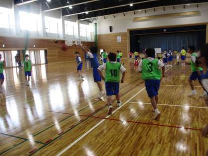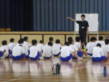 5限の28、29H男子の様子です。教育実習生が授業を行っています。ゲーム形式でバスケットボールを行っていました。生徒は汗をかきながら懸命ににボールを追いかけていました。