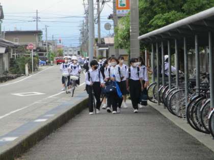今朝は登校時には雨はやんでいました。今日は気温が高くなりそうです。本日の下校完了時間は18:00です。