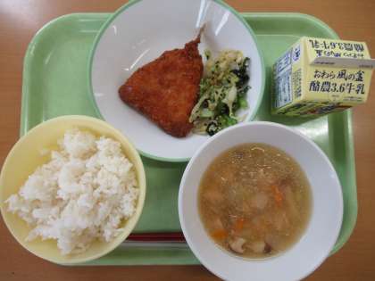 ごはん 牛乳 あじフライ ごまびたし 冬瓜の吉野煮