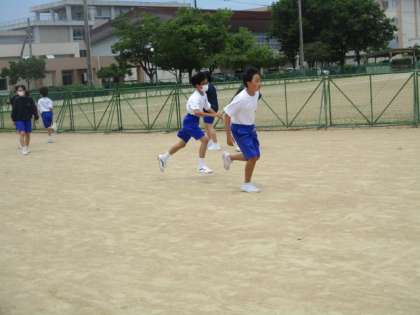 同じく17H体育、18H数学、19H国語です。体育は男女4人のグループでリレーを行うためにバトンを渡す練習をしていました。
