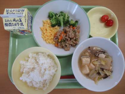 ごはん 牛乳 豚そぼろ丼(豚そぼろ・炒り卵)