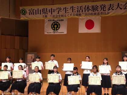 【富山県中学生生活体験発表会】本校生徒が北陸銀行頭取賞を受賞です!