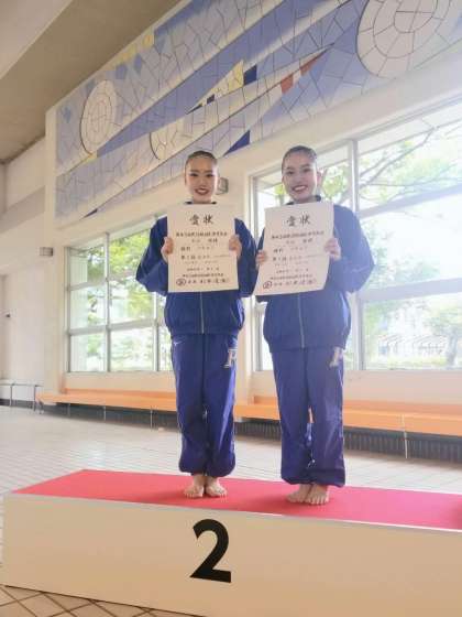 宮田選手は大浦選手(富山第一高校3年)とペアを組み「デュエット競技」に臨み、2日に開催されたテクニカルルーティンで2位、3日に開催されたフリールーティンでも2位となり、総合2位で本国体への出場を決めました。