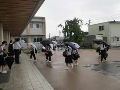 今朝は時折とても強い雨が降りましたが、登校時には、弱まってきてよかったです。本日の下校完了時間は16:30です。