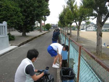 学校で用務の仕事の体験をしている様子です。