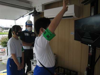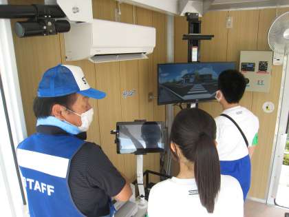 富山西警察署での活動の様子です。シュミレータを使って、交通安全の啓発活動をしていました。