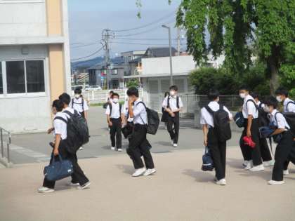 今日と明日は21H〜25Hが「社会に学ぶ『14歳の挑戦』」を行います。本日の下校完了時間は、17:30です。