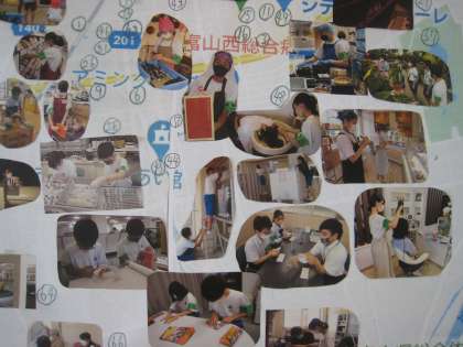 校内掲示の様子です。「社会に学ぶ『14歳の挑戦』」の活動も最終日となり、写真がいっぱいになりました。