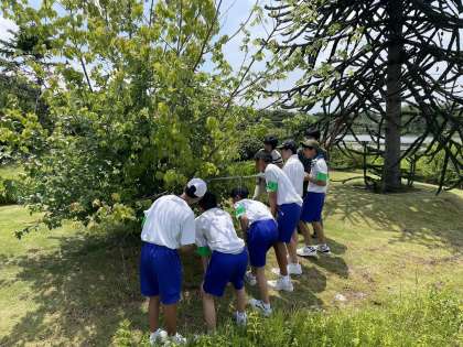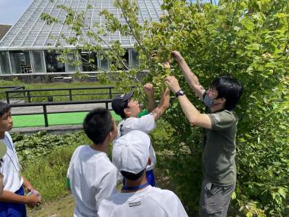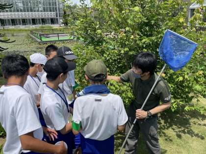 富山県中央植物園の活動です。園内を巡回し、樹木にいる害虫や外来種を駆除していました。