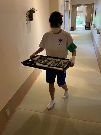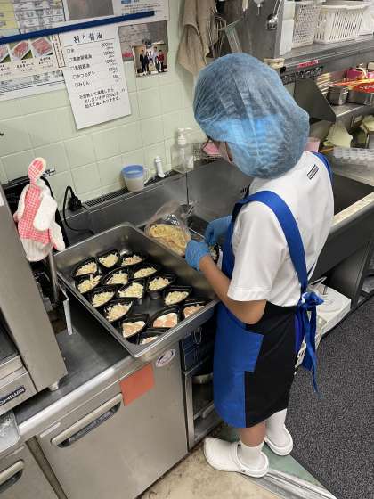 梅の花の活動の様子です。生徒たちは小皿に食材を盛り付けたり、皿を洗ったりしていました。
