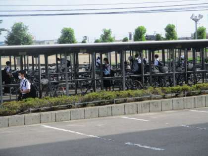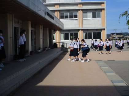 今朝は朝から晴れて暑くなりました、玄関では生活向上委員会の生徒が挨拶運動を行っています。本日の下校完了時間は18:00です。