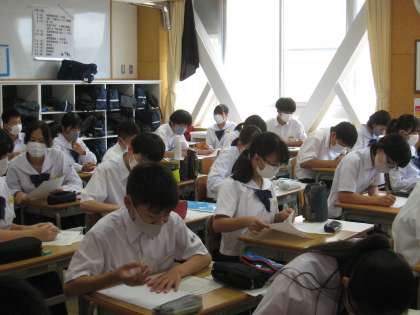 7月11日(月) 2年生「社会に学ぶ『14歳の挑戦』」お礼状書き
