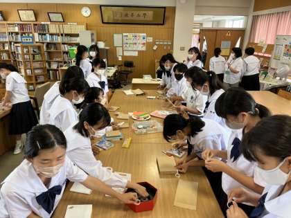 本日(7/11)から7/14(木)までの昼休みに、図書委員会が主催して「オリジナルブックカバーを作ろう!」という催しを行っています。