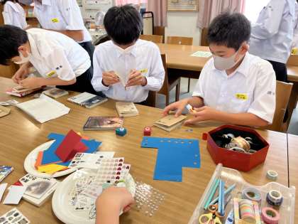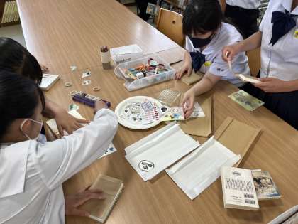 昨日(7/11)から7/14(木)までの昼休みに、図書委員会が主催して「オリジナルブックカバーを作ろう!」という催しを行っています。