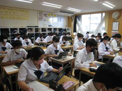 合唱コンクールに向け、合唱曲選びを行いました。教科書やタブレットで歌詞を確認しています。今回とった希望調査から、他のクラスと希望が重なった場合は抽選となります。画像は22H、24H、29Hです。