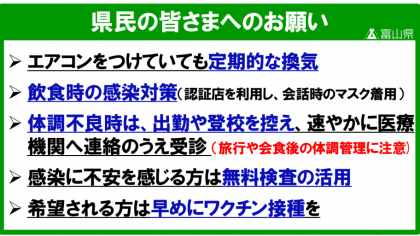 感染症拡大防止のついて、富山県からのお知らせです。
