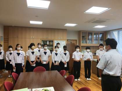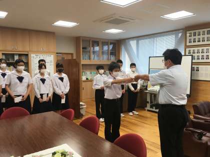 夏季休業中に行われる全国大会に出場する選手の激励会を校長室で行いました。フェンシング、空手、少林寺拳法、ソフトボール、アーティスティック・スイミングの5種目です。大会での活躍を期待します。