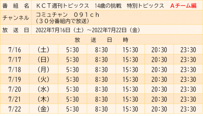 14歳の挑戦_特別トピックス_Aチーム編 の放送予定は、こちら。