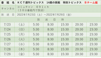 14歳の挑戦_特別トピックス_Bチーム編 の放送予定は、こちら。