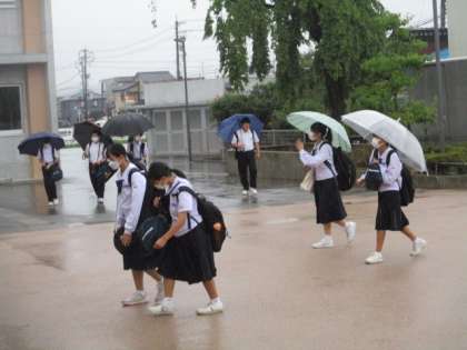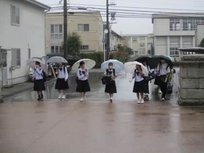 今朝は登校時、雨になりました。今日は保護者懇談会2日目になります。本日の下校完了時間は15:00です。