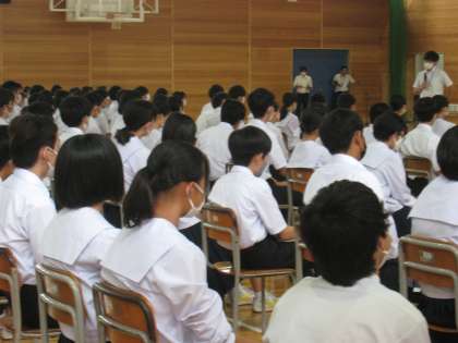 夏休みに向けて、3つの「ない」(しなない・巻き込まれない・法に触れない)の話や学習についての話をしました。