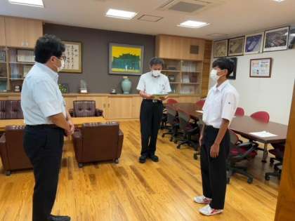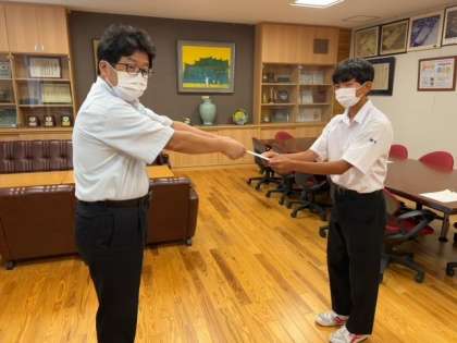 先日、校長室で行われた夏季休業中に行われる全国大会に出場する選手の激励会に続いてサッカークラブチームで活躍する選手の激励会を行いました。大会での活躍を期待します。