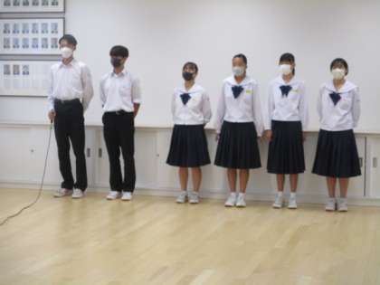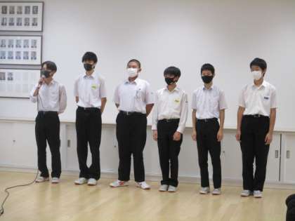 次に夏季休業中に行われる北信越大会、全国大会、コンクールに出場する生徒の壮行会を行いました。写真は上段から陸上競技部、サッカー部、男子バドミントン部です。